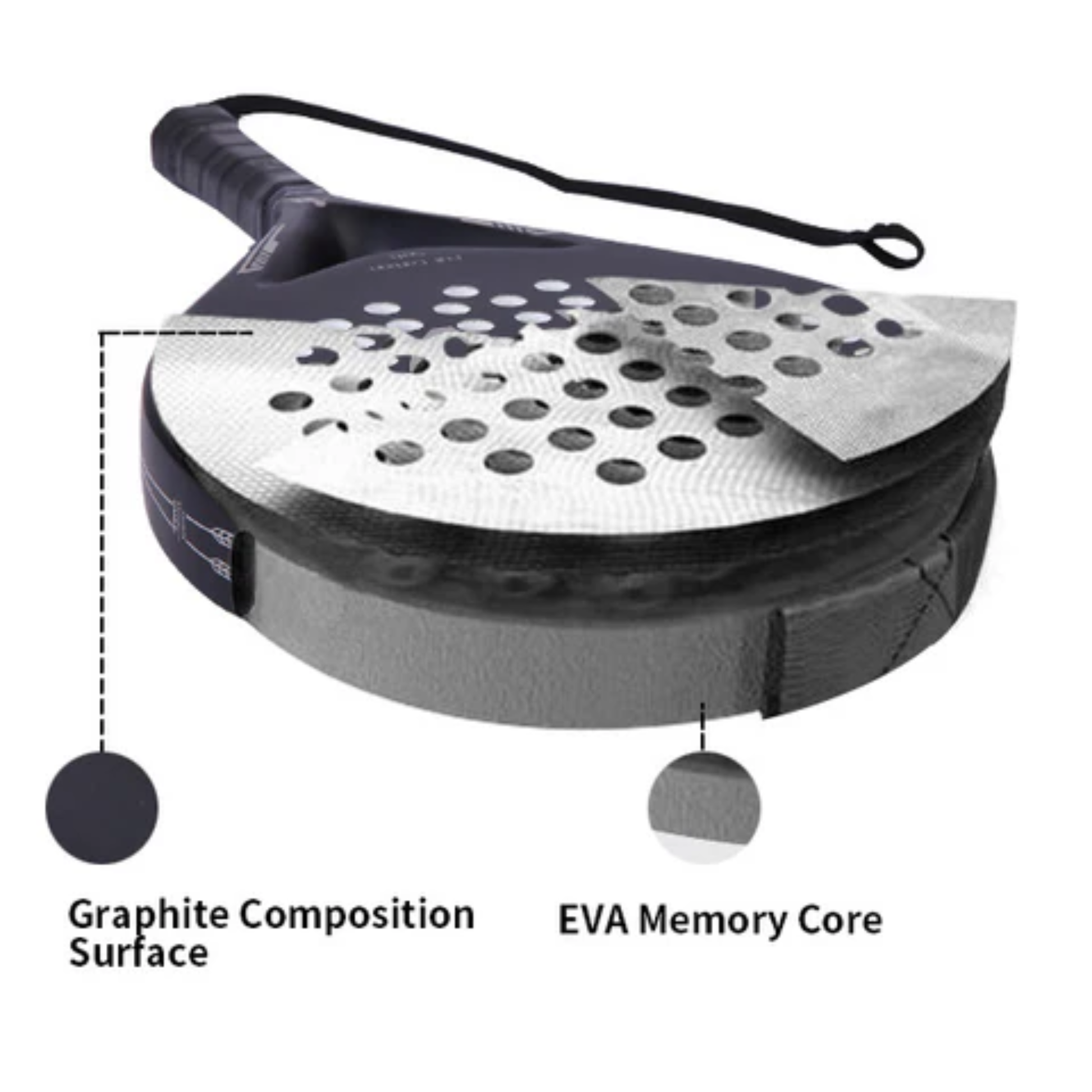 Crafted from durable Graphite Composite with a responsive EVA Memory Foam core, this padel racket delivers excellent speed and quick rebound, giving you maximum impact with stable, controlled shots every time.